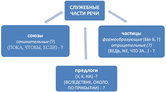 Служебные части речи не могут образовать предложение, но без них самостоятельные части речи не всегда могут быть согласованы. Все предлоги, союзы и частицы не выступают в роли члена предложения и не изменяются.
