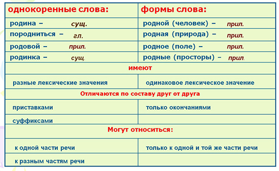 - Однокоренные слова и формы слова отличаются по составу.
